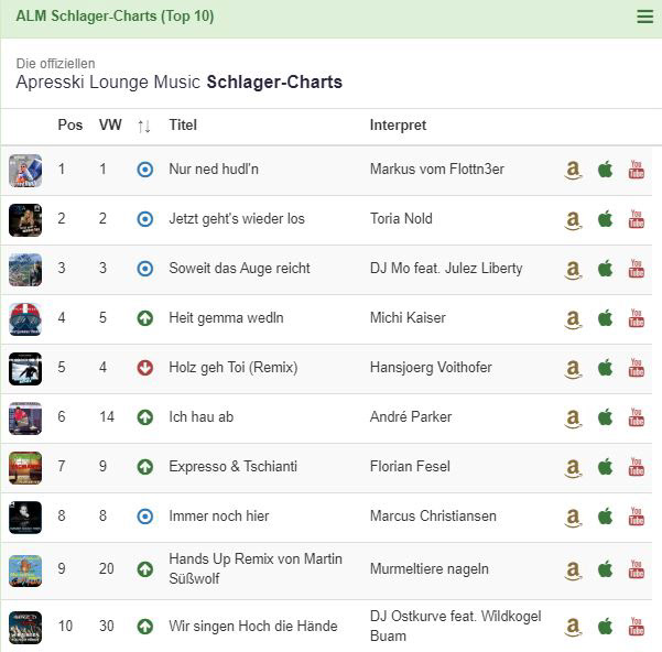 in den Top 30 der Apresski Lounge Charts dabei.
